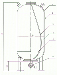 1、氣壓罐 2、充氣口 3、橡膠隔膜 4、氣室 5、水室 6、進(jìn)出水口 |