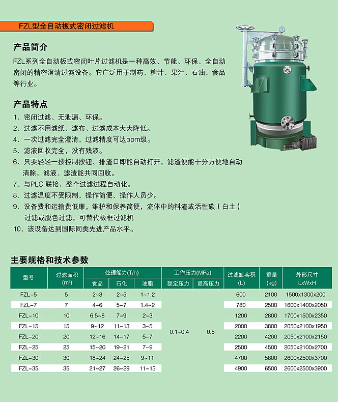 FZL型全自動(dòng)板式密閉過(guò)濾機(jī)